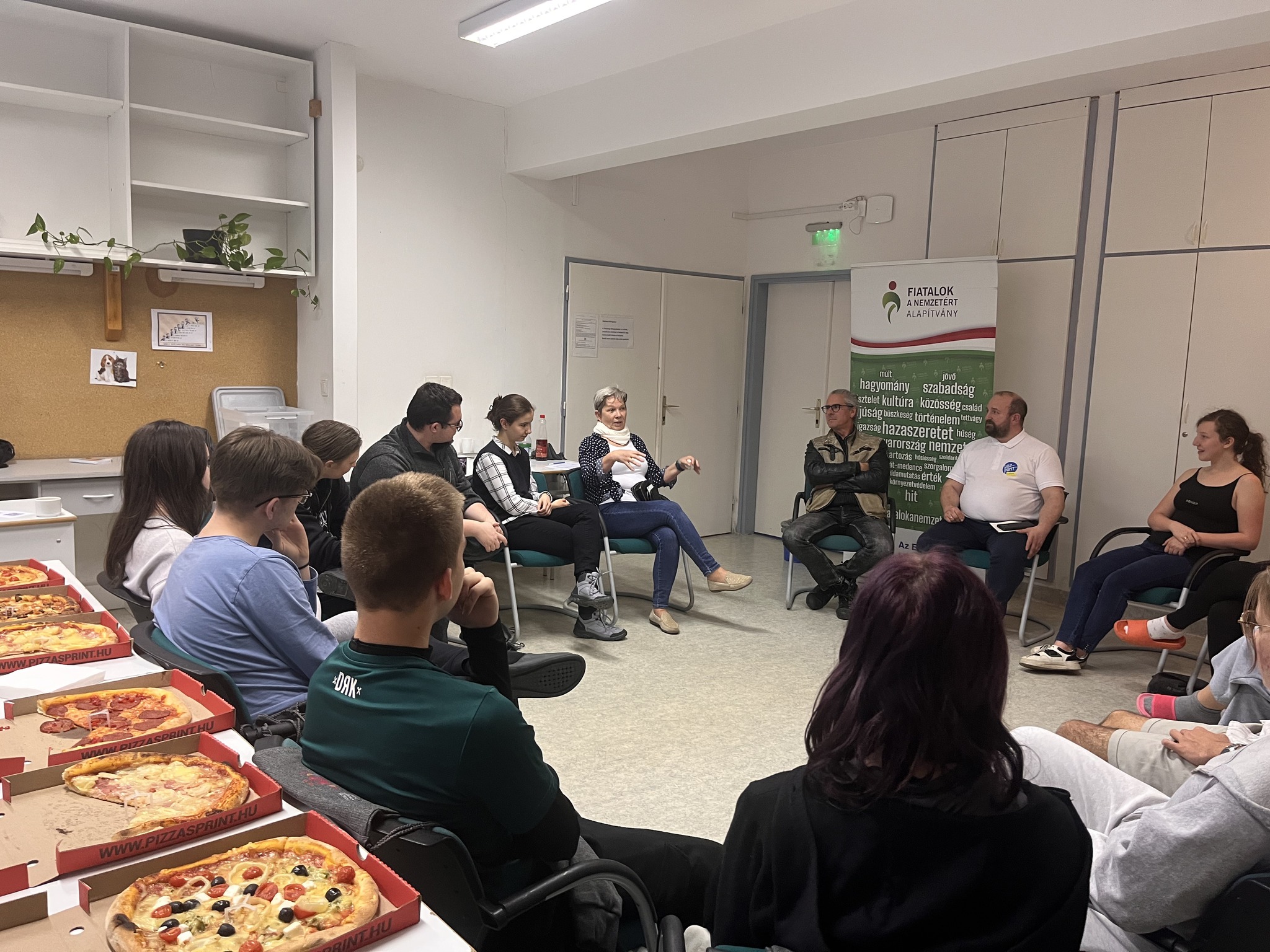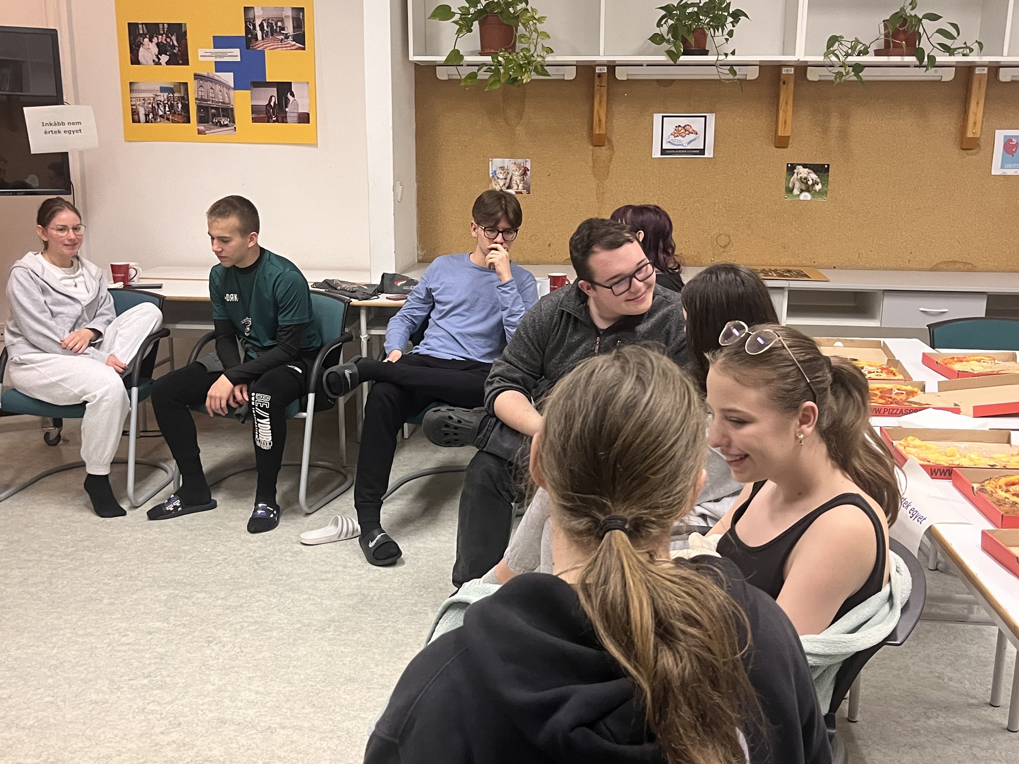 Nem maradhatott el a közös pizzázás sem, sőt, a résztvevők segítettek a projekt keretében készülő kérdőívünk tesztelésében is – értékes visszajelzéseiket be fogjuk építeni a végleges verzióba.