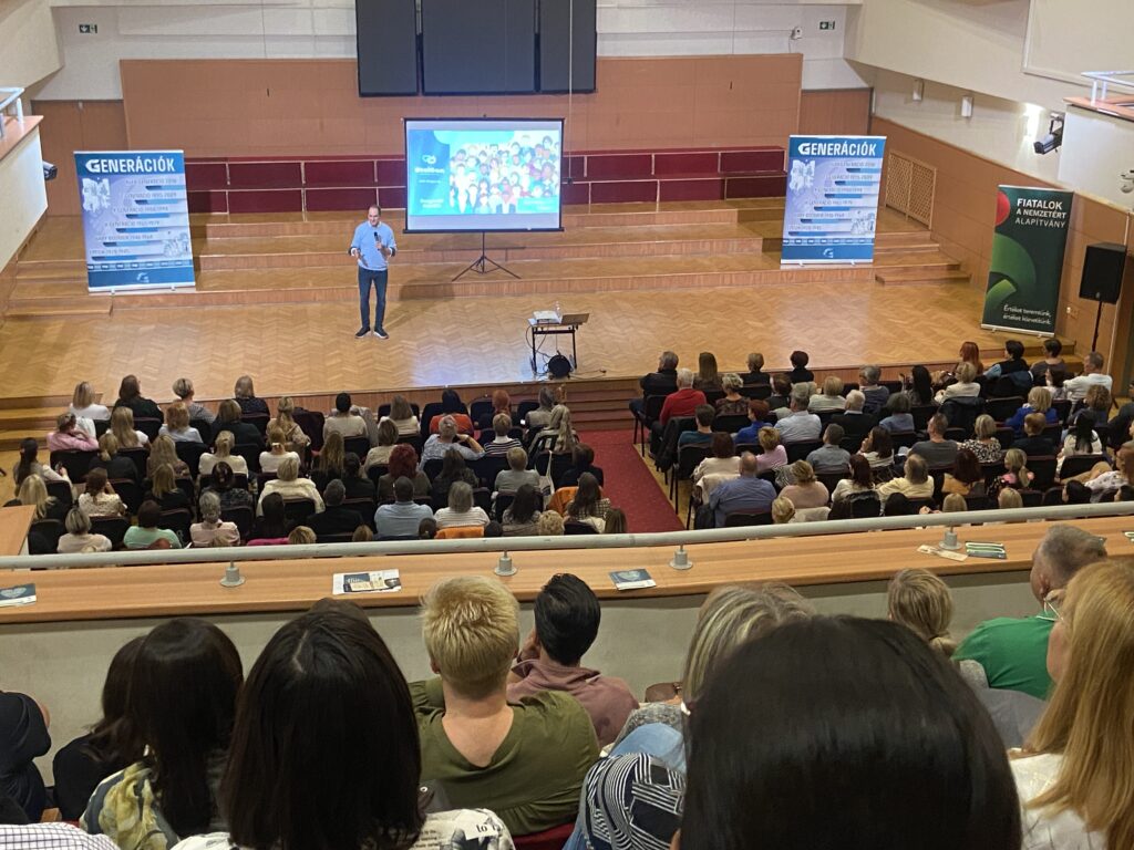 Ebben a félévben is – más előadóink mellett – folytatjuk a közös munkát Steigervald Krisztián generációkutatóval, mert úgy gondoljuk, hogy az általa átadott tudás által az emberek képesek jobban megérteni, elfogadni egymást. Ezúttal Nyíregyházára, a Kodály Zoltán Általános Iskola hangversenytermébe vittük el őt, ahol 400 ember hallgatta érdekes, tanulságos és elgondolkodtató szavait. A következő hetekben találkozhatnak még vele Cegléden és Tatabányán is szervezésünkben.