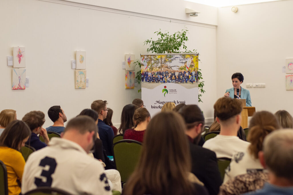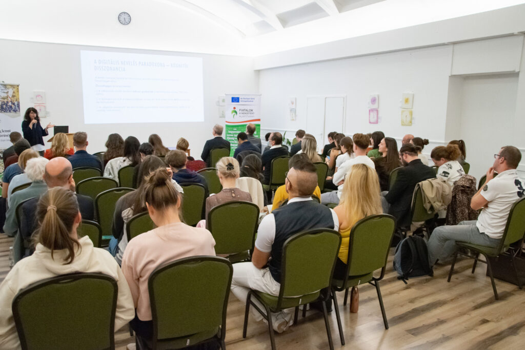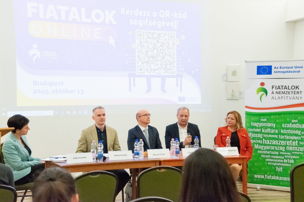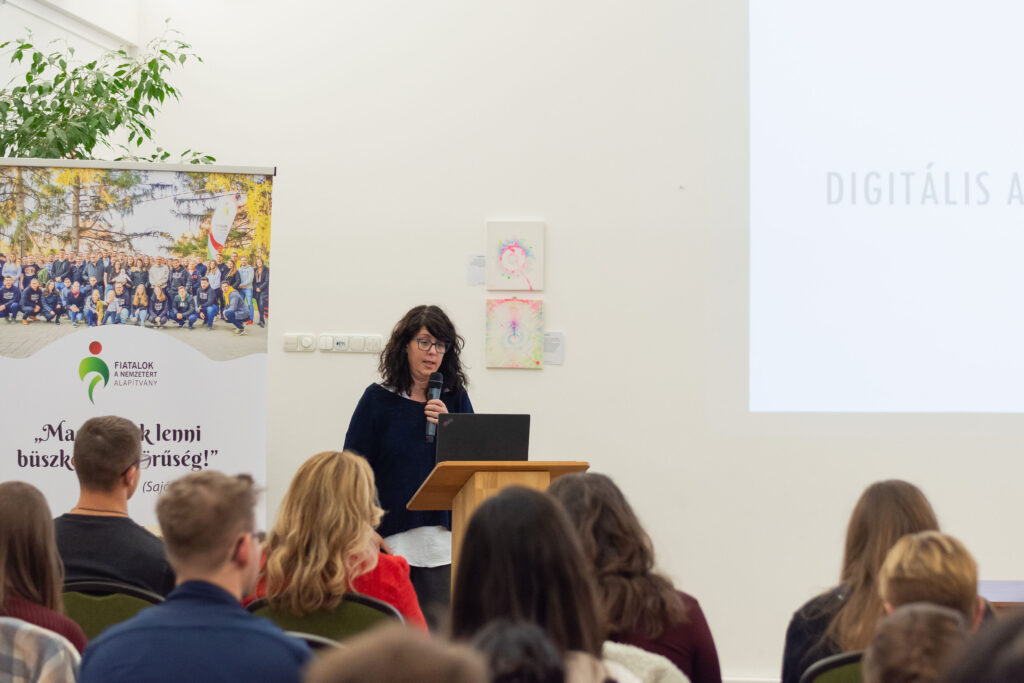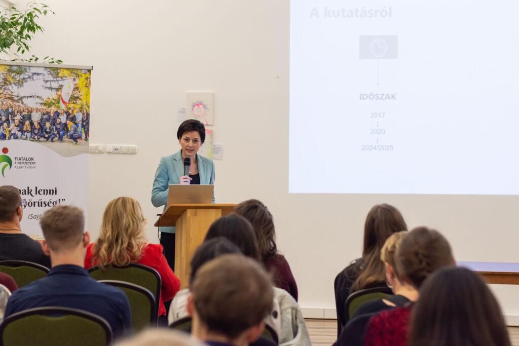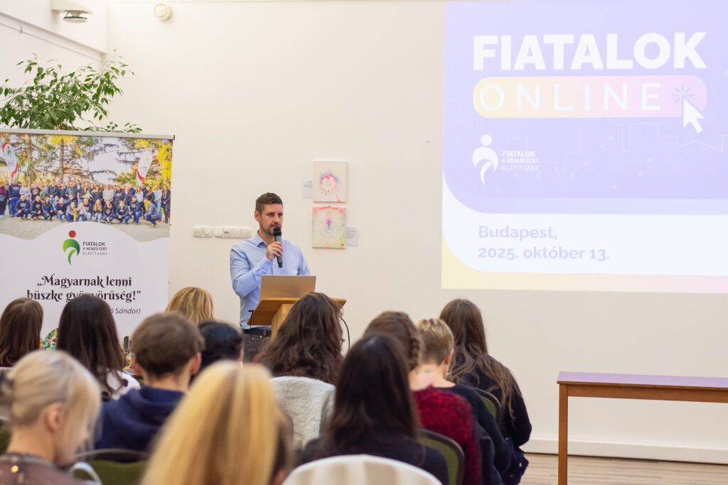 Elsőként Kovács János politológus-kutató összegezte a Fiatalok a Nemzetért Alapítvány által ebben a témában készített kutatás főbb megállapításait. A kérdőívet összesen 2031 fő töltötte ki a 14-30 éves korosztályból online és személyesen a nyári ifjúsági fesztiválok alkalmával. Közülük 94% tartja magát „aktív” közösségimédia-használónak, míg 75% találkozik rendszeresen a mesterséges intelligencia által készített tartalmakkal, illetve 66% pedig a dezinformációt (álhíreket) tartja a legnagyobb problémának. Főként ez utóbbival kapcsolatban tartják szükségesnek (51%) a közösségi média szigorúbb szabályozását és az újfajta digitális kompetenciák erősítését. Emellett az is kiderült, hogy – saját bevallásuk szerint – átlagosan napi 4-7 órát töltenek a virtuális térben, amit zömmel kapcsolattartásra (78%) és szórakozásra (78%) fordítanak. Ugyanakkor érzik (58%) magukon a túlhasználat jegyeit is. Elsődlegesen itt „fogyasztanak” híreket, ahol jelentős hangsúlyt kap a közvetett (pl. szerkesztett videókból történő) információszerzés. A válaszokból kiolvasható még, hogy a családjaik mellett a pedagógusok felelősségét jelölik meg kiváltképp a felelős médiahasználatra való neveléshez. Közelebbről megvizsgálva viszont látható, hogy a fiatalok között is tapasztalható különbség: míg a „Z” generációt (18-30 év) általánosságban véve egyfajta reális tudatosság jellemzi, addig a legújabb „alfa” generációt (14-18 év) inkább a trendkövetés motiválja. Következtetésként az érintett szakmai szervezetek és politikai döntéshozók irányába a generációspecifikus kritikai gondolkodásmód fejlesztését (pl. a hiteles információk és a mesterséges intelligenciával készített tartalmak felismerését), a családok és pedagógusok mellett az ifjúsági szervezetek szerepének erősítését, valamint a népszerű influenszerek bevonását és országos kampányok elindítását lehet kiemelni főképpen az online zaklatás, az adatvédelmi kockázatok, illetve a gyűlöletbeszéd eredményes megelőzésére.