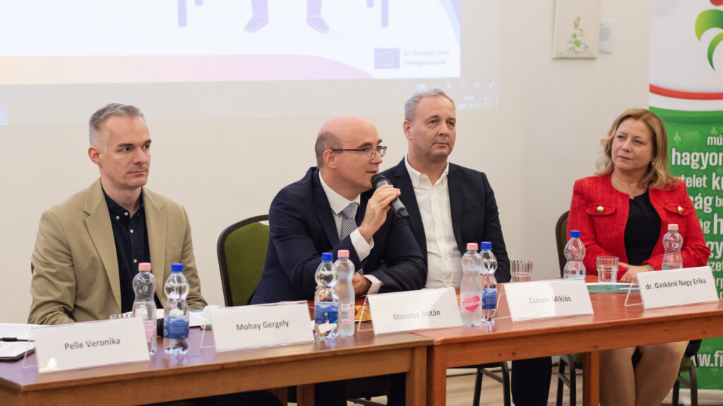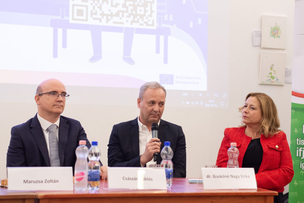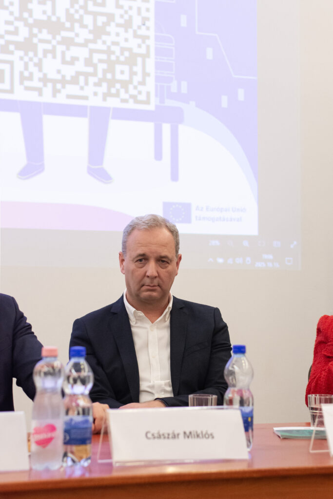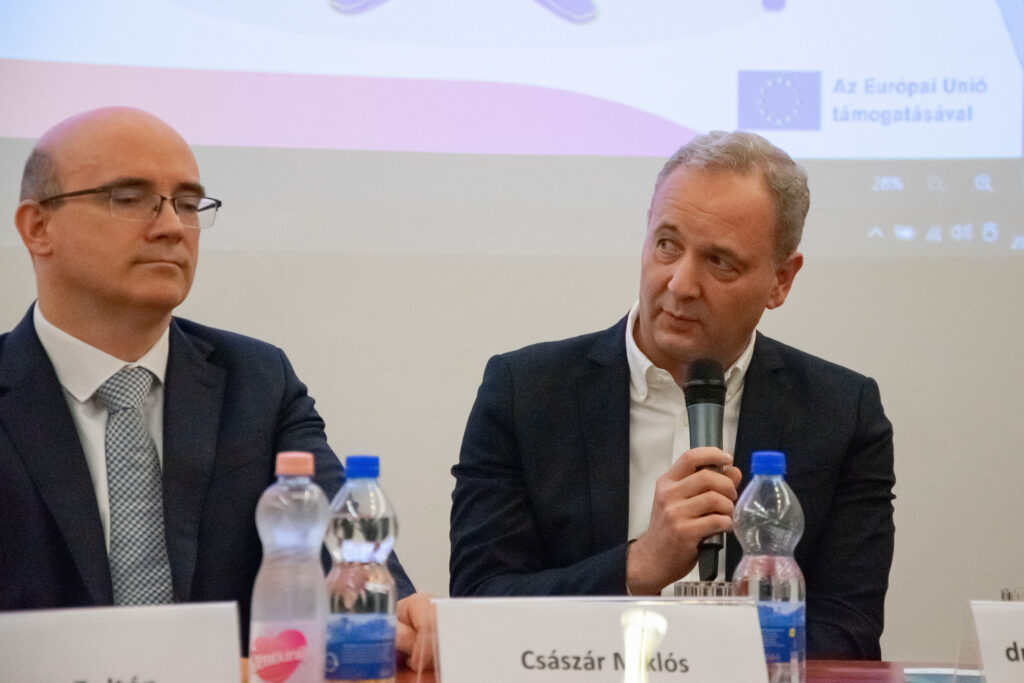 A konferencia második részében Pelle Veronika moderálásával kerekasztalbeszélgetés következett, ahol a felkért vendégek bővebben kifejthették a témával kapcsolatos szakmai álláspontjukat és személyes véleményüket. Dr. Maruzsa Zoltán köznevelési államtitkár alapvetően az átlagosnál kicsivel jobbnak értékeli a médiatudatosságot, hiszen már számos kormányzati intézkedés történt ennek erősítése érdekében például a digitális kultúra tantárgy iskolai bevezetésével és a pedagógusok ezirányú (tovább)képzésével, bár mindig lehetnek még fejlesztendő területek. Emellett az online elérhető tartalmak mennyiségi és minőségi ellentmondásaira hívta fel a figyelmet az értékközvetítés jegyében. Mohay Gergely, a Kulturális és Innovációs Minisztérium (KIM) Fiatalokért Felelős Főosztályának vezetője a mentális egészséghez a kiegyensúlyozott online és offline jelenlétet tartja követendőnek például az időablak (mindennek megvan az ideje ás időtartama) módszer alkalmazásával. Véleménye szerint túlzó szabályozási eszközök helyett inkább motiválással és élményalapú közösségi programokkal lehetne a fiatalokat „visszahozni” a virtuális valóságból. Császár Miklós, a Bűvösvölgy Médiaértés-oktató Központ osztályvezetője szerint nem lehet és nem is kell markánsan szétválasztani az online és az offline világot, viszont nem könnyű megtalálni az egyensúlyt. Hozzátette, hogy intézményükben eddig már mintegy 200 ezer tinédzserhez vitték közelebb játékos formában a médiatudatosságot, miközben a szülők nyitottságának és példamutatásának szükségességét ugyancsak hangsúlyozta. Dr. Gaskóné Nagy Erika digitális gyermekvédelmi szakértő azt gondolja, hogy a fiatalok médiatudatossága javuló tendenciát mutat, azonban a pedagógusok mellett a szülők és családtagok felelőssége sem elhanyagolható. Problémaként leginkább a „mindenhol jelen kell lenni és mindent meg kell mutatni” késztetést vetette fel, ami nemcsak generációs hatásra, hanem technológiai nyomásként egyaránt érezhető. Ez ellen pedig egy újszerű személyes ellenállóképesség (digitális reziliencia) kialakítása jelenthet igazán megoldást. A résztvevők egyetértettek, hogy sok előremutató folyamat látható és bár nincs csodaszerként használható általános recept, számos jó gyakorlat segítheti a fiatalok médiatudatosságának erősítését a mentális egészségük javításához az online és az offline egyensúly megtalálásáért.