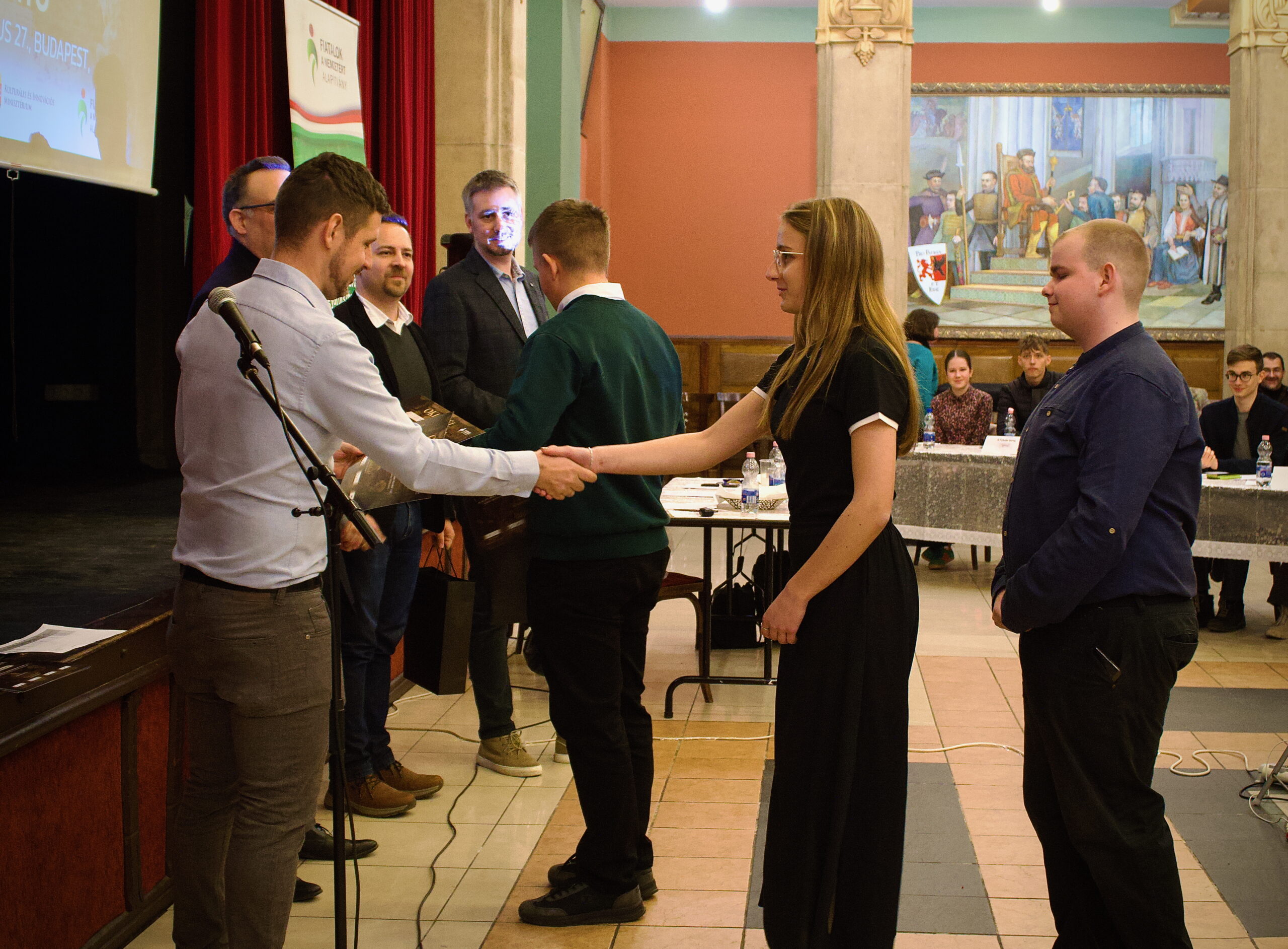 A döntőbe bejutott 10 csapatnak történelmi tudáson nyugvó, de még inkább a kreativitást, fantáziát és az előadókészséget igénylő feladatokban kellett versenyezniük egymással, és megmutatni a felkészültségüket a zsűri előtt. Ezúton is köszönjük a történészekből álló zsűrinek, Kósa-Grimm András Kristófnak, a Nemzeti Örökség Intézete munkatársának, Dr. Rácz János, a Veritas Intézet munkatársának és Dr. Tóth Zsoltnak, a Szent Mihály Intézményfenntartó pedagógiai igazgatójának a szakszerű és objektív értékelést a döntőben!