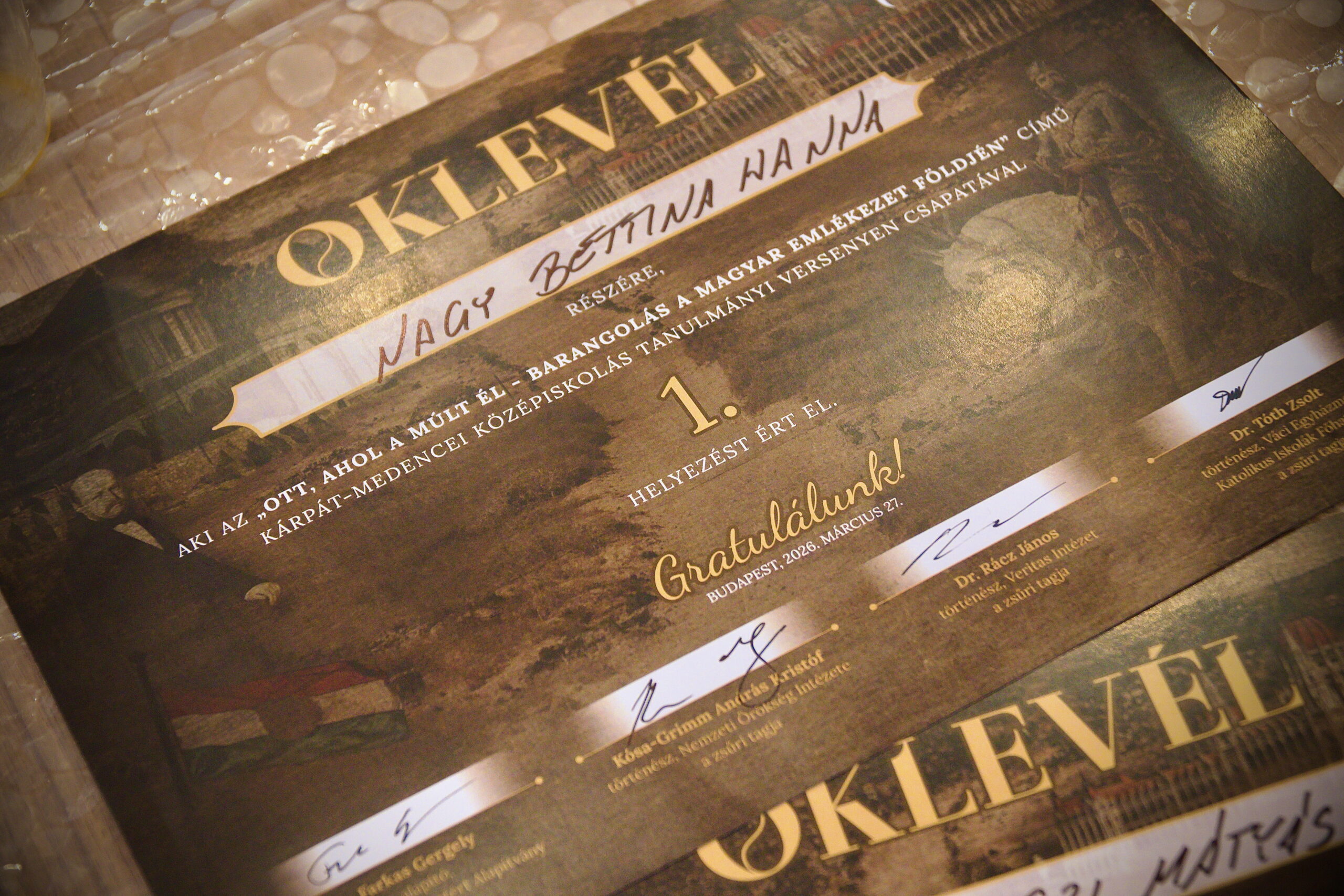 2026. március 27-én zajlott le a tavaly ősszel meghirdetett tanulmányi versenyünk döntője Budapesten. Alapítványunknak immár ez az 5. hasonló versenye: Mindszenty József bíboros, Esterházy János, Madách Az ember tragédiája, illetve a múltunk hősei téma után ebben a tanévben a nemzeti és történelmi emlékhelyek kerületek a középpontba. Célunk ezzel a választással az volt, hogy a diákok jobban megismerjék a magyar történelem és emlékezet kiemelt helyszíneit, épített örökségeit, valamint az ezekhez kapcsolódó eseményeket és személyeket.