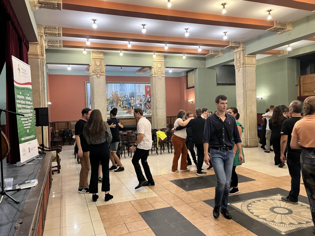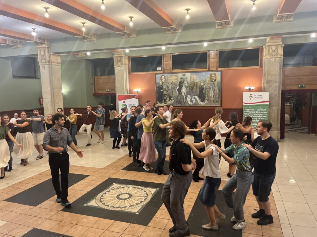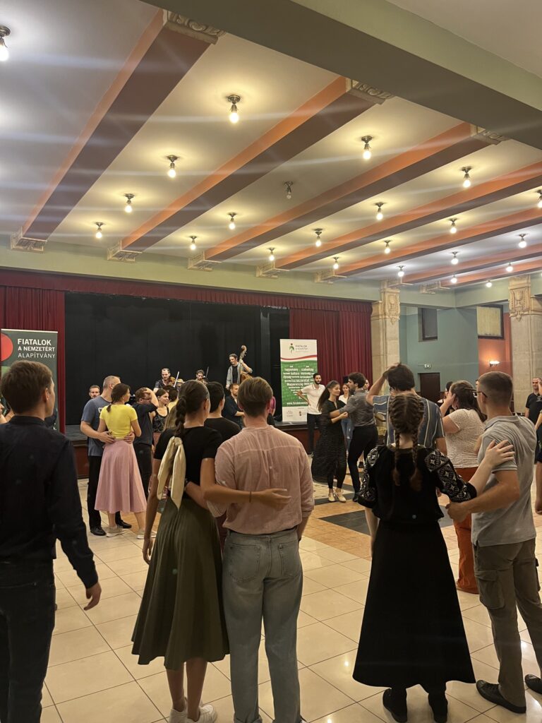 A nyári szünet után felfokozott érdeklődéssel indult el új táncházas évadunk. A régi résztvevők mellett sok új fiatal érkezett, hogy kezdő szintről indulva sajátítsanak el táncokat vagy épp idézzék fel régi tudásukat. A mostani alkalommal széki, kalotaszegi és moldvai táncok alkották a repertoárt, és tánctanításban, de szabad táncban egyaránt volt része a résztvevőknek.