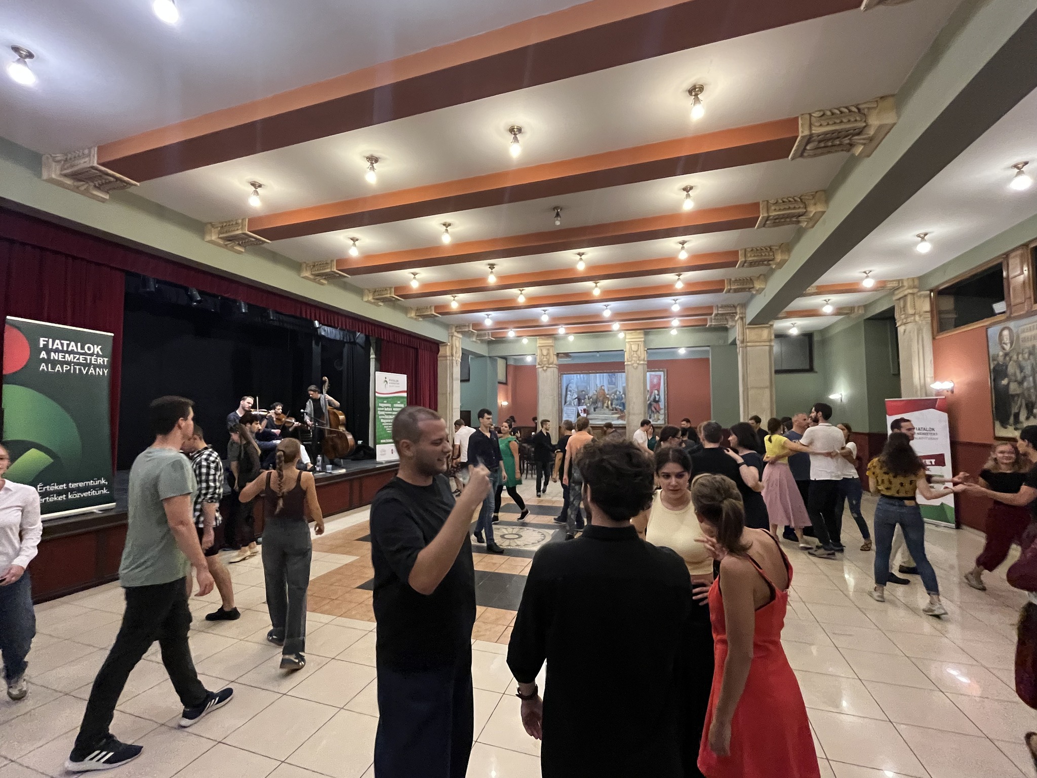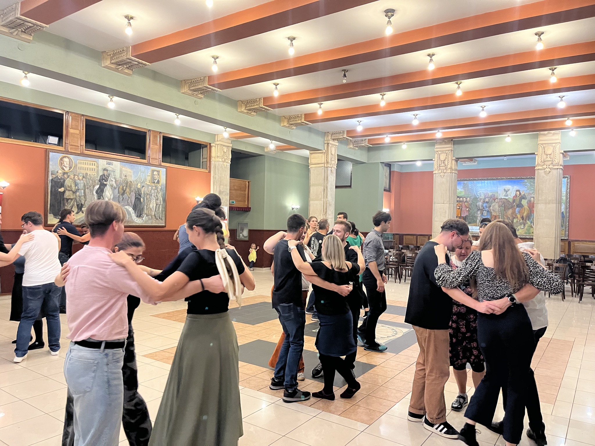 A nyári szünet után felfokozott érdeklődéssel indult el új táncházas évadunk. A régi résztvevők mellett sok új fiatal érkezett, hogy kezdő szintről indulva sajátítsanak el táncokat vagy épp idézzék fel régi tudásukat. A mostani alkalommal széki, kalotaszegi és moldvai táncok alkották a repertoárt, és tánctanításban, de szabad táncban egyaránt volt része a résztvevőknek.
