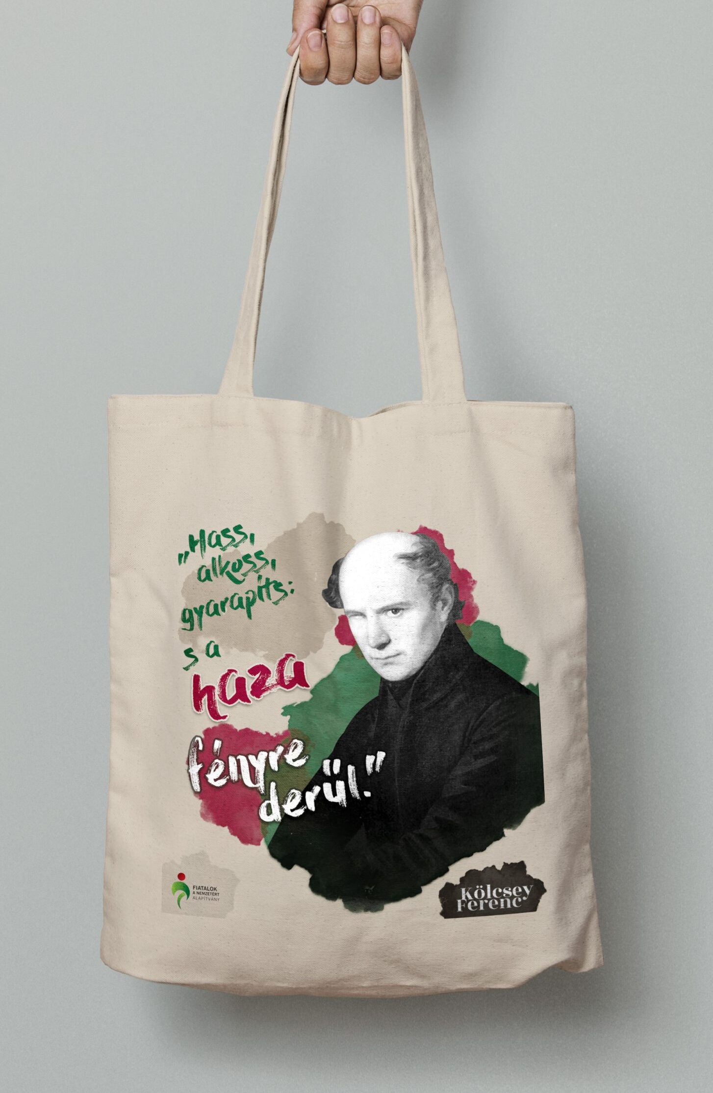 A mindennapok praktikus kiegészítője ez a natúr színű vászontáska, amelyet használhatsz bevásárláshoz vagy akár az ebédedet is szállíthatod benne a munkahelyedre. Anyaga 100% pamut, környezettudatos viselet. Összehajtva kis helyet foglal, ha épp üres, kinyitva pedig sok minden belefér. Mindezt Kölcsey iránymutatásával: „Hass, alkoss, gyarapíts: s a haza fényre derűl.”
